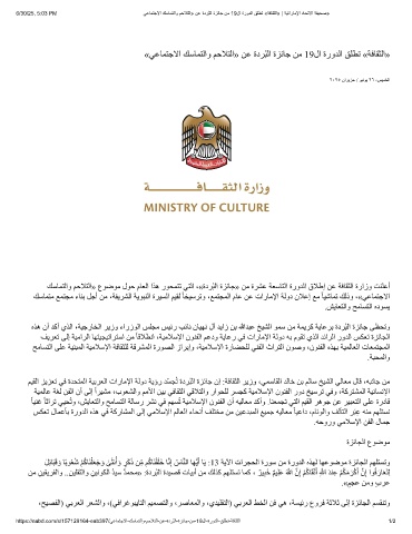 6/30/25, 5:03 PM ﻲﻋﺎﻣﺗﺟﻻا كﺳﺎﻣﺗﻟاو مﺣﻼﺗﻟا» نﻋ ةدرُﺑﻟا ةزﺋﺎﺟ نﻣ 19لا ةرودﻟا ﻖﻠطﺗ «ﺔﻓﺎﻘﺛﻟا» | ﺔﯾﺗارﺎﻣﻹا دﺎﺣﺗﻻا ﺔﻔﯾﺣﺻ»