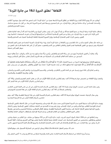6/30/25, 5:03 PM "ةدرُﺑﻟا ةزﺋﺎﺟ نﻣ 19ـﻟا ةرودﻟا ﻖﻠطﺗ "ﺔﻓﺎﻘﺛﻟا - Nas News UAE