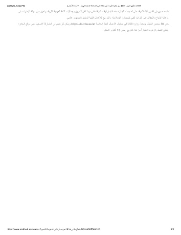 ﻲﻓ تارﺎﻣﻹا ﺔﻟود رود ززﻌﺗو ،ﺔﯾرﺛﻟا ﺔﯾﺑرﻌﻟا ﺔﻐﻠﻟا تﺎﯾﻟﺎﻣﺟو ﻖﯾرﻌﻟا نﻔﻟا اذﮭﺑ ﻲﻔﺗﺣﺗ ﺔﯾﻣﻟﺎﻋ ﺔﯾﺗارﺎﻣإ ﺔﺻﻧﻣ ةزﺋﺎﺟﻟا تﺣﺑﺻأ ﻰﺗﺣ ،ﺔﯾﻣﻼﺳﻹا نوﻧﻔﻟا ﻲﻓ نﯾﺻﺻﺧﺗﻣ