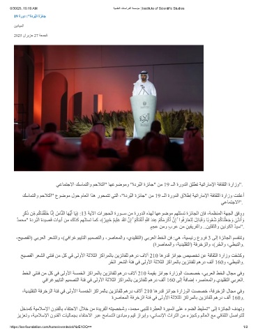 ﻲﻋﺎﻤﺘﺟﻻا ﻚﺳﺎﻤﺘﻟاو ﻢﺣﻼﺘﻟا" ﺎﮭﻋﻮﺿﻮﻣو "ةدﺮُﺒﻟا ةﺰﺋﺎﺟ" ﻦﻣ 19 ــﻟا ةروﺪﻟا ﻖﻠﻄﺗ ﺔﯿﺗارﺎﻣﻹا ﺔﻓﺎﻘﺜﻟا ةرازو".