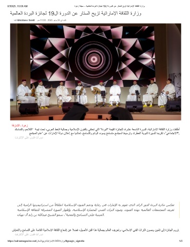 6/30/25, 10:09 AM ةرھز ﺔﻠﺟﻣ – ﺔﯾﻣﻟﺎﻌﻟا ةدرﺑﻟا ةزﺋﺎﺟﻟ 19لا ةرودﻟا نﻋ رﺎﺗﺳﻟا ﺢﯾزﺗ ﺔﯾﺗارﺎﻣﻹا ﺔﻓﺎﻘﺛﻟا ةرازو