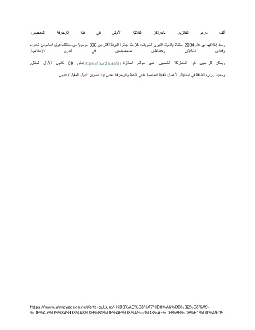 ىهتنا /.لبقملا لولاا نيرشت 13 ىتح، ةفرخزلاو طخلا يتئفب ةصاخلا ةينفلا لامعلأا لابقتسا يف ةفاقثلا ةرازو أدبتسو