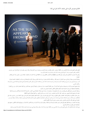 ةوطﺧ ضرﻌﻣﻟا اذھ لﺛﻣﯾ" :ًﻼﺋﺎﻗ .ةدرُﺑﻟا ةزﺋﺎﺟ ةرﯾﺳﻣ ﻲﻓ ﺔﻣﮭﻣ ﺔطﺣﻣ لﺛﻣﯾ ثدﺣﻟا اذھ نأ ﻰﻠﻋ ﺔﻓﺎﻘﺛﻟا رﯾزو ﻲﻣﺳﺎﻘﻟا دﻟﺎﺧ نﺑ مﻟﺎﺳ ﺦﯾﺷﻟا ﻲﻟﺎﻌﻣ دﻛأ ،حﺎﺗﺗﻓﻻا لﻼﺧ ﮫﺗﻣﻠﻛ ﻲﻓو