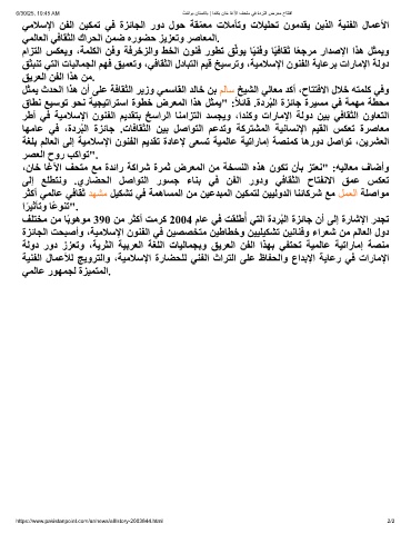 ﺔﻟود رود زﺰﻌﺗو ،ﺔﯾﺮﺜﻟا ﺔﯿﺑﺮﻌﻟا ﺔﻐﻠﻟا تﺎﯿﻟﺎﻤﺠﺑو ﻖﯾﺮﻌﻟا ﻦﻔﻟا اﺬﮭﺑ ﻲﻔﺘﺤﺗ ﺔﯿﻤﻟﺎﻋ ﺔﯿﺗارﺎﻣإ ﺔﺼﻨﻣ
