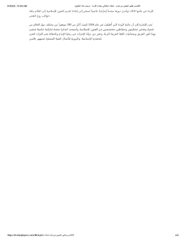 ﺔﻐﻠﺑ ﻢﻟﺎﻌﻟا ﻰﻟإ ﺔﻴﻣالﺳإلا نﻮﻨﻔﻟا ﻢﻳﺪﻘﺗ ةدﺎﻋإ ﻰﻟإ ﻰﻌﺴﺗ ً ﺔﻴﻤﻟﺎﻋ ً ﺔﻴﺗارﺎﻣإ ً ﺔﺼﻨﻣ ﺎﻫرود ﻞﺻاﻮﺗ ،20ـﻟا ﺎﻬﻣﺎﻋ ﻲﻓ ةدﺮﺒﻟا