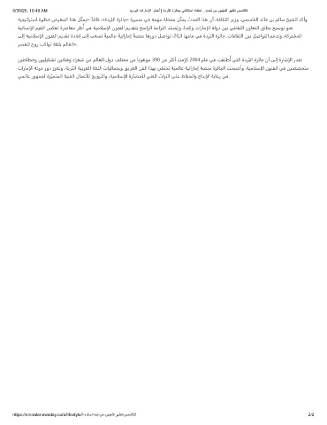 ﻰﻟإ ﺔﻴﻣالﺳإلا نﻮﻨﻔﻟا ﻢﻳﺪﻘﺗ ةدﺎﻋإ ﻰﻟإ ﻰﻌﺴﺗ ً ﺔﻴﻤﻟﺎﻋ ً ﺔﻴﺗارﺎﻣإ ً ﺔﺼﻨﻣ ﺎﻫرود ﻞﺻاﻮﺗ ،20ـﻟا ﺎﻬﻣﺎﻋ ﻲﻓ ةدﺮﺒﻟا ةﺰﺋﺎﺟ .تﺎﻓﺎﻘﺜﻟا ﻦﻴﺑ ﻞﺻاﻮﺘﻟا ﻢﻋﺪﺗو ،ﺔﻛﺮﺘﺸﻤﻟا