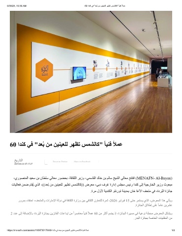 تﺎﯿﻟﺎﻌﻓ ﻦﻤﺿ مﺎﻘُﯾ يﺬﻟا ،((ﺪﻌُﺑ ﻦﻣ ﻦﯿﻨﯿﻌﻠﻟ ﺮﮭﻈﺗ ﺲﻤﺸﻟﺎﻛ)) ضﺮﻌﻣ ،ﻲﺑد فﺮﻏ ةرادإ ﺲﻠﺠﻣ ﺲﯿﺋر اﺪﻨﻛ ﻰﻟإ ﺔﯿﺟرﺎﺨﻟا ﺮﯾزو ثﻮﻌﺒﻣ