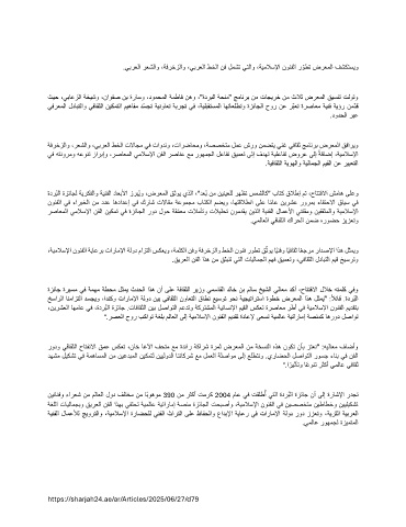 ةينفلا لامعلأل جيورتلاو ،ةيملاسلإا ةراضحلل ينفلا ثارتلا ىلع ظافحلاو عادبلإا ةياعر يف تاراملإا ةلود رود ززعتو ،ةيرثلا ةيبرعلا