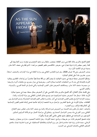 ءﺎﻔﺘﺣا ،ﻒﺤﺘﻤﻟاو تارﺎﻣﻹا ﺔﻟود ﻓ ﺔﻓﺎﻘﺜﻟا ةرازو ﻦﻴﺑ ﻓﺎﻘﺜﻟا نوﺎﻌﺘﻠﻟ ةﺮﻤﺛ ﻮﻫو ،2026 ﺮﻳاﺮﺒﻓ 15 ﺘﺣ ضﺮﻌﻤﻟا ﺮﻤﺘﺴﻳ