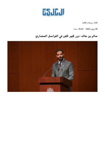 ﺔﻴﻓﺎﻘﺛ تﺎﻴﻣﻮﻳ ,ﺔﻓﺎﻘﺛ ءﺎﺴﻣ 19:45 2025 ﻮﻴﻧﻮﻳ 26 يرﺎﻀﺤﻟا ﻞﺻاﻮﺘﻟا ﻓ ﻦﻔﻠﻟ ﺮﻴﺒﻛ رود :ﺪﻟﺎﺧ ﻦﺑ ﻢﻟﺎﺳ