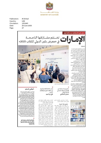 Publication: Al Etihad Country: UAE Circulation: 109,640 Date: 24 June 2025 Page: 27