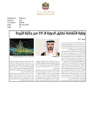 Publication: Al Bayan Country: UAE Circulation: 88,000 Date: 26 June 2025 Page: 23