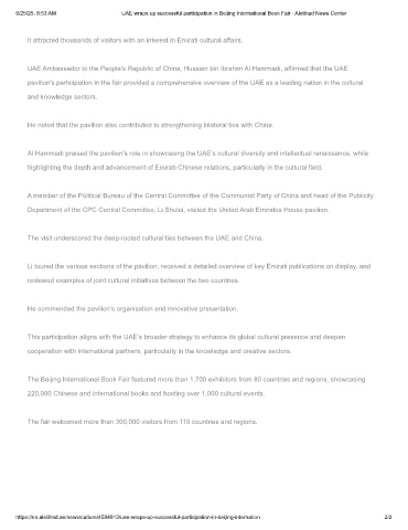 6/25/25, 8:53 AM UAE wraps up successful participation in Beijing International Book Fair - Aletihad News Center