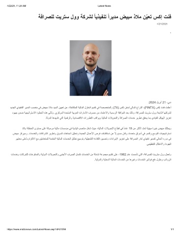 دﯾدﺟﻟا يذﯾﻔﻧﺗﻟا رﯾدﻣﻟا بﺻﻧﻣ ﻲﻓ ضﯾﺑﻣ ذﻼﻣ دﯾﺳﻟا نﯾﯾﻌﺗ نﻋ ،ﺔﻠﻣﺎﻛﺗﻣﻟا ﺔﯾﻟﺎﻣﻟا لوﻠﺣﻟا مﯾدﻘﺗ ﻲﻓ ﺔﺻﺻﺧﺗﻣﻟاو (7X) سﻛإ نﻔﺳﻟ ﻲﻟﺎﻣﻟا عارذﻟا ،(FINTX) سﻛإ تﻧﻓ تﻧﻠﻋأ