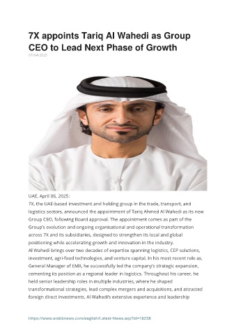 logistics sectors, announced the appointment of Tariq Ahmed Al Wahedi as its new