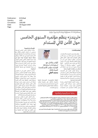 Publication: Al Etihad Country: UAE Circulation: 109,640 Date: 30 August 2025 Page: 14