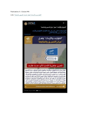 Publication: X – Evision MN Link: "ةعباتملاو قيسنتلا زكرم" لعفي "تامزلأاو ئراوطلا"