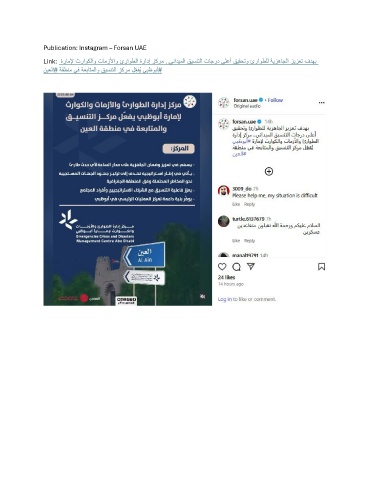 Publication: Instagram – Forsan UAE Link: ةراملإ ثراوكلاو تامزلأاو ئراوطلا ةرادإ زكرم ..يناديملا قيسنتلا تاجرد ىلعأ قيقحتو ئراوطلل ةيزهاجلا زيزعت فدهب نيعلا# ةقطنم يف ةعباتملاو قيسنتلا زكرم لّ عفُي يبظوبأ#