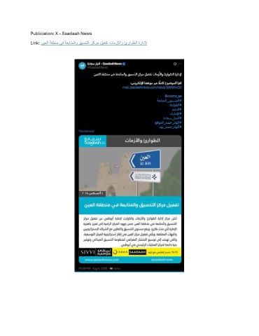 Publication: X – Saadaah News Link: نيعلا ةقطنم يف ةعباتملاو قيسنتلا زكرم ليعفت تامزلأاو ئراوطلا ةرادلإ