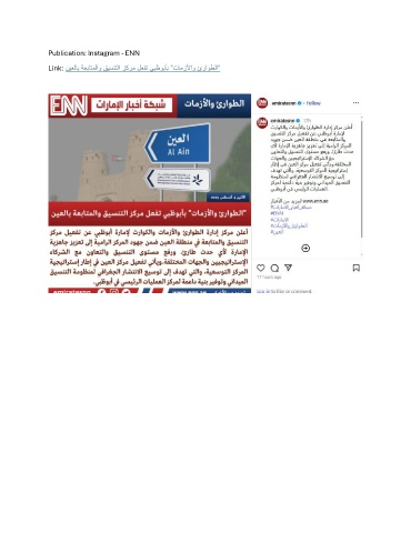 Publication: Instagram - ENN Link: نيعلاب ةعباتملاو قيسنتلا زكرم لعفت يبظوبأب ”تامزلأاو ئراوطلا“