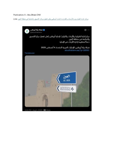 Publication: X – Abu Dhabi ENV Link: نيعلا ةقطنم يف ةعباتملاو قيسنتلا زكرم ليعفت نلعُي يبظوبأ ةراملإ ثراوكلاو تامزلأاو ئراوطلا ةرادإ زكرم