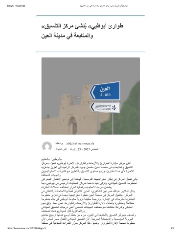 8/5/25, 10:23 AM «نﯾﻌﻟا ﺔﻧﯾدﻣ ﻲﻓ ﺔﻌﺑﺎﺗﻣﻟاو ﻖﯾﺳﻧﺗﻟا زﻛرﻣ ﺊﺷﻧُﯾ «ﻲﺑظوﺑأ ئراوط
