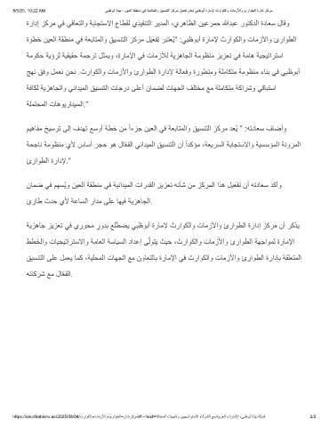 8/5/25, 10:22 AM ﻲﺑظوﺑأ ﺔﺋﯾﺑ - نﯾﻌﻟا ﺔﻘطﻧﻣ ﻲﻓ ﺔﻌﺑﺎﺗﻣﻟاو ﻖﯾﺳﻧﺗﻟا زﻛرﻣ لﯾﻌﻔﺗ نﻠﻌُﯾ ﻲﺑظوﺑأ ةرﺎﻣﻹ ثراوﻛﻟاو تﺎﻣزﻷاو ئراوطﻟا ةرادإ زﻛرﻣ