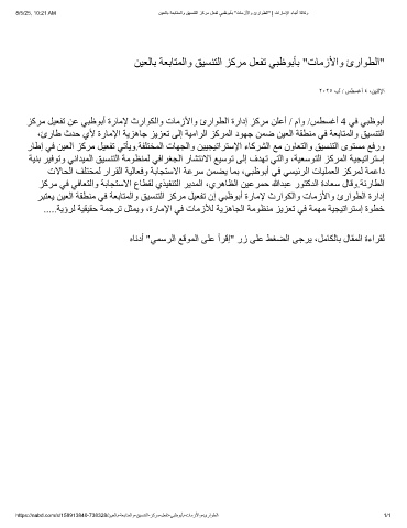 8/5/25, 10:21 AM نﯾﻌﻟﺎﺑ ﺔﻌﺑﺎﺗﻣﻟاو ﻖﯾﺳﻧﺗﻟا زﻛرﻣ لﻌﻔﺗ ﻲﺑظوﺑﺄﺑ "تﺎﻣزﻷاو ئراوطﻟا" | تارﺎﻣﻹا ءﺎﺑﻧأ ﺔﻟﺎﻛو