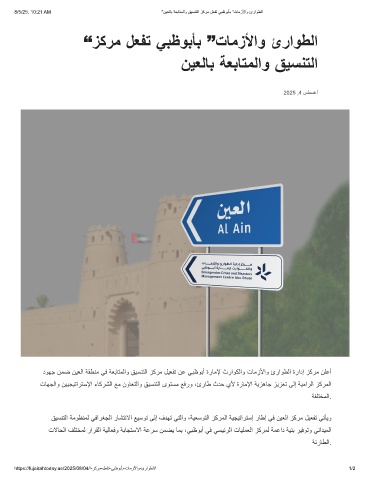 8/5/25, 10:21 AM “نﯾﻌﻟﺎﺑ ﺔﻌﺑﺎﺗﻣﻟاو ﻖﯾﺳﻧﺗﻟا زﻛرﻣ لﻌﻔﺗ ﻲﺑظوﺑﺄﺑ ”تﺎﻣزﻷاو ئراوطﻟا