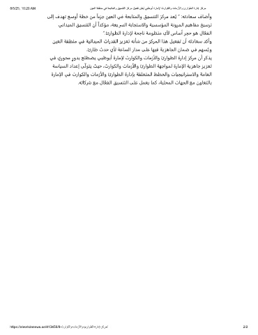 8/5/25, 10:20 AM نﯾﻌﻟا ﺔﻘطﻧﻣ ﻲﻓ ﺔﻌﺑﺎﺗﻣﻟاو ﻖﯾﺳﻧﺗﻟا زﻛرﻣ لﯾﻌﻔﺗ نﻠﻌُﯾ ﻲﺑظوﺑأ ةرﺎﻣﻹ ثراوﻛﻟاو تﺎﻣزﻷاو ئراوطﻟا ةرادإ زﻛرﻣ
