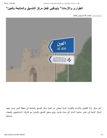 8/5/25, 10:20 AM “نطوﻟا ةدﯾرﺟ › نﯾﻌﻟﺎﺑ ﺔﻌﺑﺎﺗﻣﻟاو ﻖﯾﺳﻧﺗﻟا زﻛرﻣ لﻌﻔﺗ ﻲﺑظوﺑﺄﺑ ”تﺎﻣزﻷاو ئراوطﻟا