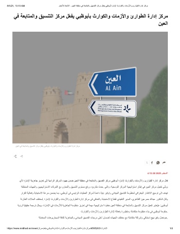 8/5/25, 10:19 AM رﺎﺑﺧﻸﻟ دﺎﺣﺗﻻا - نﯾﻌﻟا ﺔﻘطﻧﻣ ﻲﻓ ﺔﻌﺑﺎﺗﻣﻟاو ﻖﯾﺳﻧﺗﻟا زﻛرﻣ لّﻌﻔﯾ ﻲﺑظوﺑأ ةرﺎﻣﻹ ثراوﻛﻟاو تﺎﻣزﻷاو ئراوطﻟا ةرادإ زﻛرﻣ