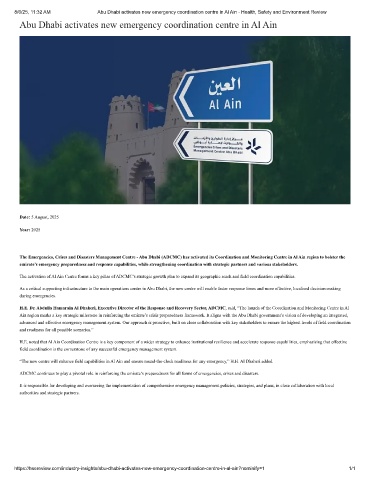 8/6/25, 11:32 AM Abu Dhabi activates new emergency coordination centre in Al Ain - Health, Safety and Environment Review