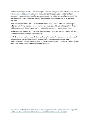 His Excellency noted that Al Ain Coordination Centre is a key component of a wider strategy to