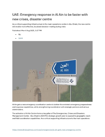 The activation of Al Ain Centre forms a key pillar of The Emergencies, Crises and Disasters