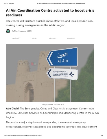 8/5/25, 9:58 AM                       Al Ain Coordination Centre activated to boost crisis readiness - Emirati Times