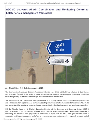 8/5/25, 9:59 AM              ADCMC activates Al Ain Coordination and Monitoring Centre to bolster crisis management framework