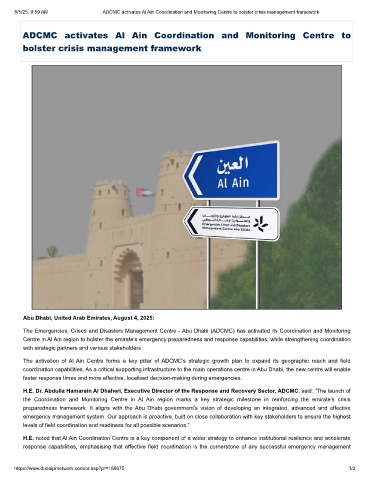 8/5/25, 9:59 AM              ADCMC activates Al Ain Coordination and Monitoring Centre to bolster crisis management framework