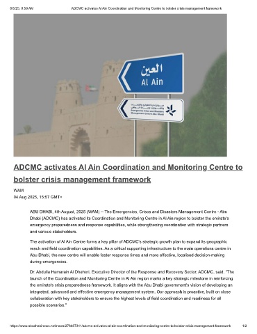 https://www.abudhabinews.net/news/278487311/adcmc-activates-al-ain-coordination-and-monitoring-centre-to-bolster-crisis-management-framework 1/2