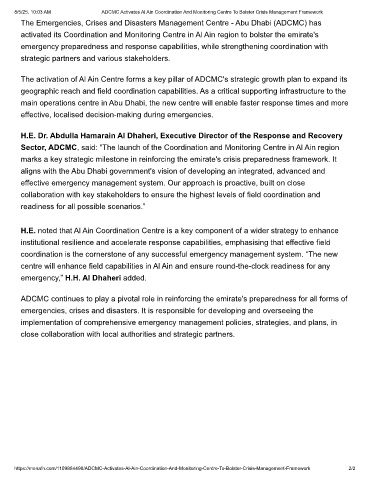 8/5/25, 10:03 AM ADCMC Activates Al Ain Coordination And Monitoring Centre To Bolster Crisis Management Framework