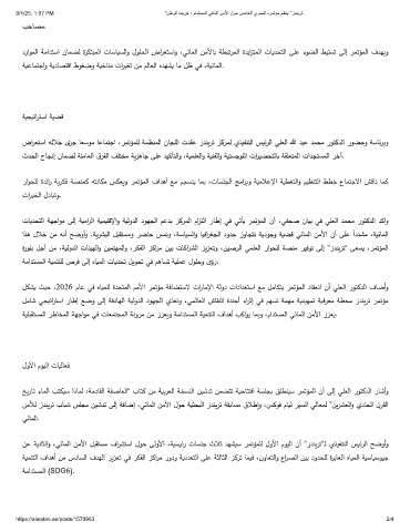 9/1/25, 1:07 PM “نطوﻟا ةدﯾرﺟ › مادﺗﺳﻣﻟا ﻲﺋﺎﻣﻟا نﻣﻷا لوﺣ سﻣﺎﺧﻟا يوﻧﺳﻟا هرﻣﺗؤﻣ مظﻧﯾ ”زدﻧﯾرﺗ