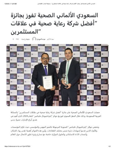 1/20/25, 11:20 AM يدﺎﺻﺗﻗﻹا رﺷؤﻣﻟا ﺔﻔﯾﺣﺻ - "نﯾرﻣﺛﺗﺳﻣﻟا تﺎﻗﻼﻋ ﻲﻓ ﺔﯾﺣﺻ ﺔﯾﺎﻋر ﺔﻛرﺷ لﺿﻓأ" ةزﺋﺎﺟﺑ زوﻔﺗ ﺔﯾﺣﺻﻟا ﻲﻧﺎﻣﻟﻷا يدوﻌﺳﻟا