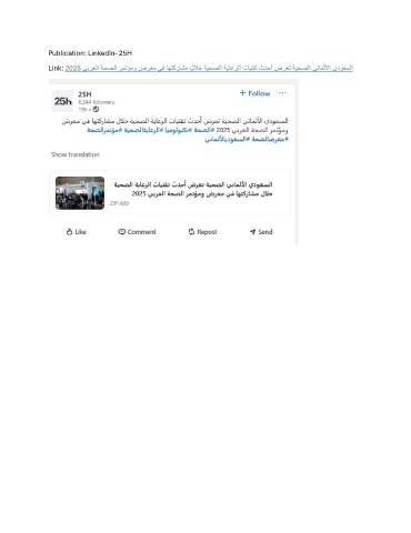 Publication: LinkedIn- 25H Link: 2025 يبرعلا ةحصلا رمتؤمو ضرعم يف اهتكراشم للاخ ةيحصلا ةياعرلا تاينقت ثدحأ ضرعت ةيحصلا ينامللأا يدوعسلا