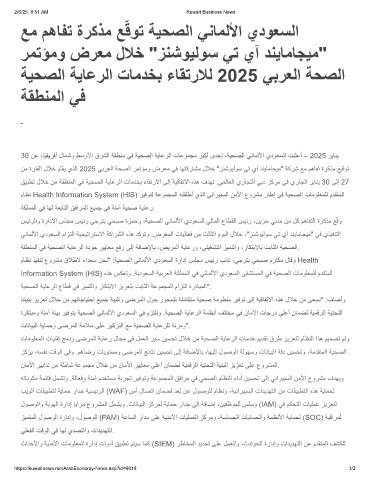 نﻣ ةرﺗﻔﻟا لﻼﺧ مﺎﻘﯾ يذﻟا 2025 ﻲﺑرﻌﻟا ﺔﺣﺻﻟا رﻣﺗؤﻣو ضرﻌﻣ ﻲﻓ ﺎﮭﺗﻛرﺎﺷﻣ لﻼﺧ "زﻧﺷوﯾﻟوﺳ ﻲﺗ يآ دﻧﯾﺎﻣﺎﺟﯾﻣ" ﺔﻛرﺷ ﻊﻣ مھﺎﻔﺗ ةرﻛذﻣ ﻊﯾﻗوﺗ