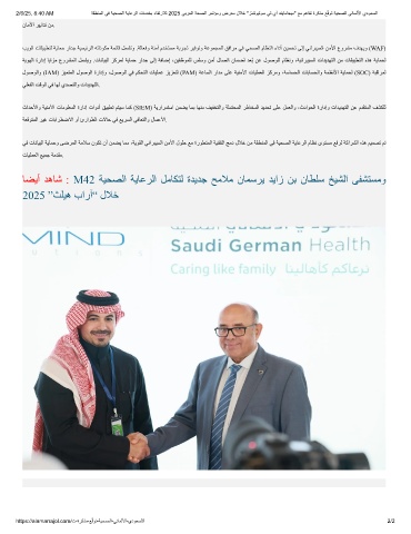 2/6/25, 8:40 AM ﺔﻘطﻧﻣﻟا ﻲﻓ ﺔﯾﺣﺻﻟا ﺔﯾﺎﻋرﻟا تﺎﻣدﺧﺑ ءﺎﻘﺗرﻼﻟ 2025 ﻲﺑرﻌﻟا ﺔﺣﺻﻟا رﻣﺗؤﻣو ضرﻌﻣ لﻼﺧ "زﻧﺷوﯾﻟوﺳ ﻲﺗ يآ دﻧﯾﺎﻣﺎﺟﯾﻣ" ﻊﻣ مھﺎﻔﺗ ةرﻛذﻣ ﻊ ّ ﻗوﺗ ﺔﯾﺣﺻﻟا ﻲﻧﺎﻣﻟﻷا يدوﻌﺳﻟا