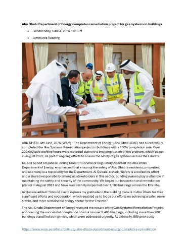 Abu Dhabi Department of Energy completes remediation project for gas systems in buildings