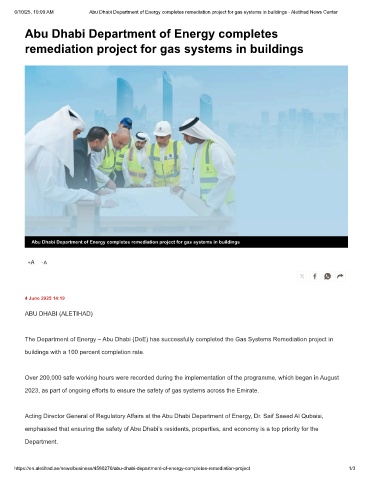 6/10/25, 10:00 AM Abu Dhabi Department of Energy completes remediation project for gas systems in buildings - Aletihad News Center