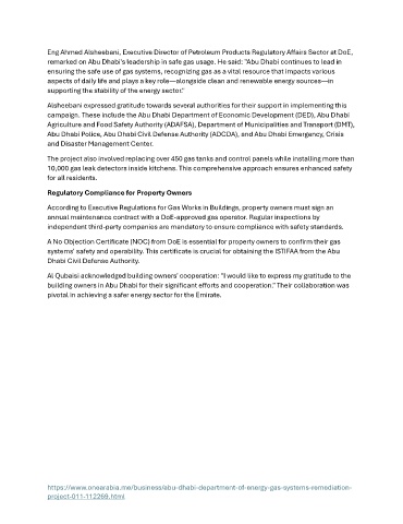 remarked on Abu Dhabi's leadership in safe gas usage. He said: "Abu Dhabi continues to lead in