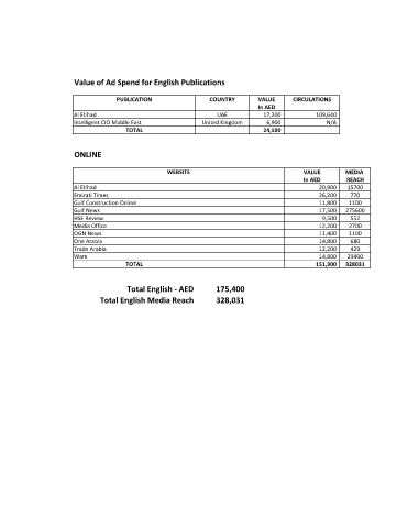 Value of Ad Spend for English Publications