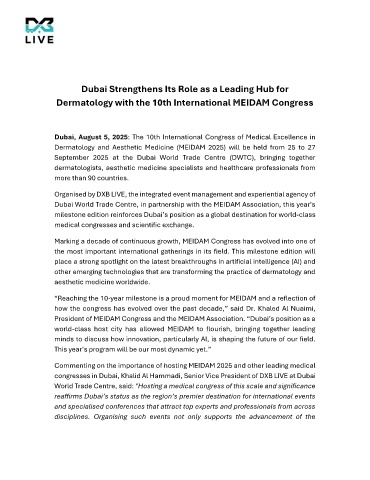 Dubai, August 5, 2025: The 10th International Congress of Medical Excellence in